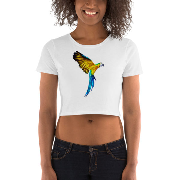 The season’s trendiest garment – the crop top. This top is tight-fitting but still incredibly comfortable, and it hits just above the navel.